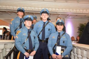 The 200 Club of Essex County presented Valor Awards to New Jersey State Police Detective II Edward Schmalz, Detective II Anthony Giunta and Trooper Blazej Oczkos for the capture of a suspect wanted for kidnapping and attempted murder. The officers also rescued a three-year-old victim during the incident. The Valor Awards ceremony took place on Thursday, May 5th at Nanina’s in the Park, Belleville, NJ. A cadre of other State Police officers attended the event.